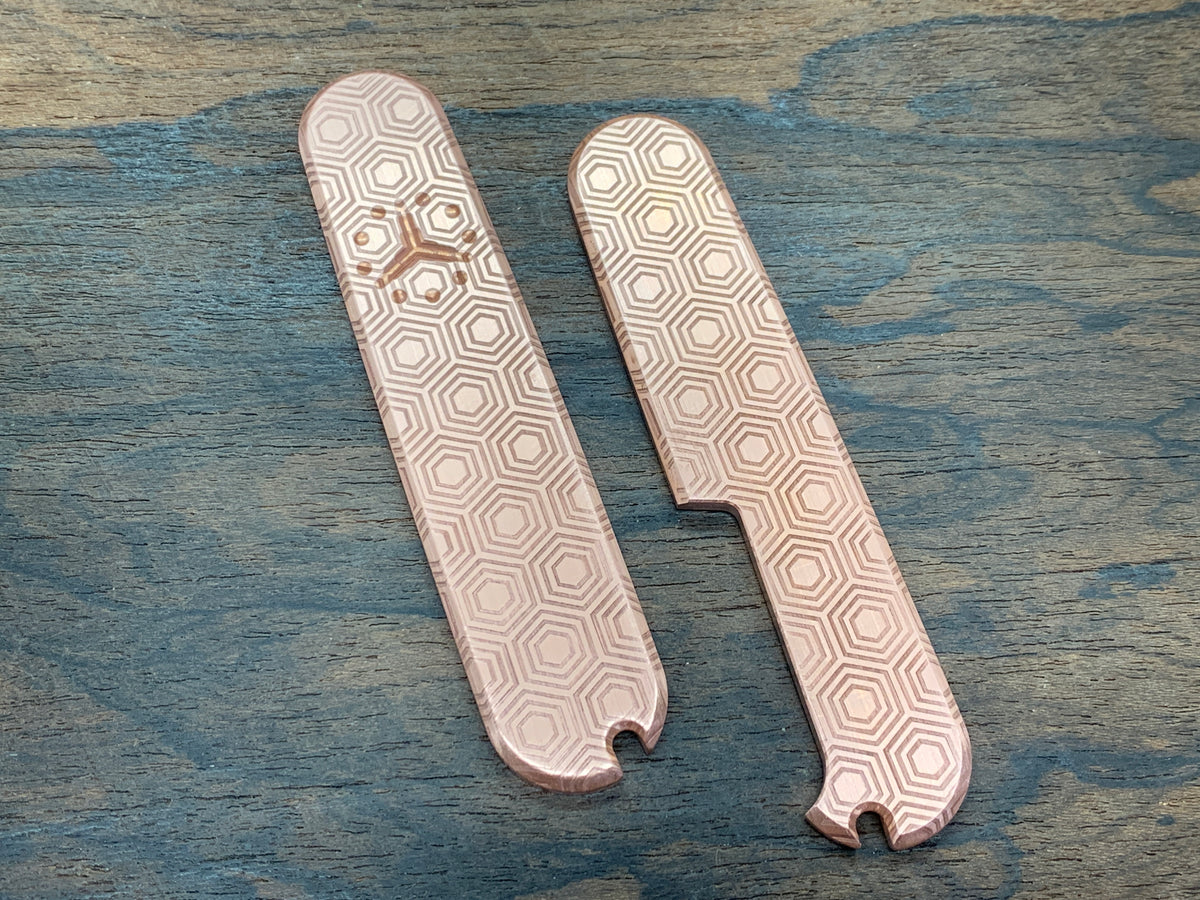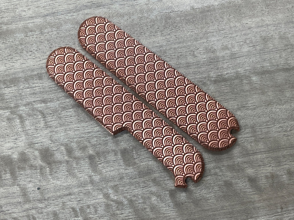 Install solid copper scales on your 91mm SAK for a classic, aging finish with unmatched character. These CNC-machined scales support clip and cutout customization and naturally develop a deep patina over time.