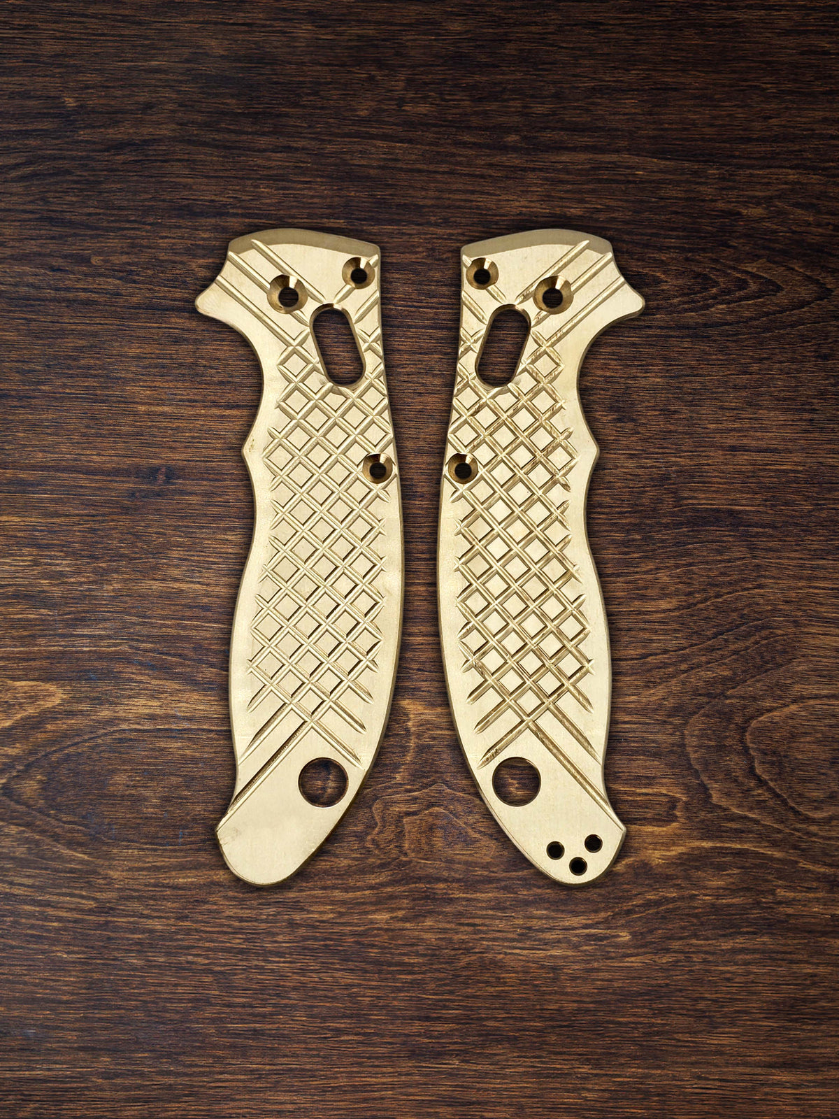 Enhance your Manix 2 with FRAG-pattern brass scales. Precision-cut for grip and control, these scales age beautifully with use.