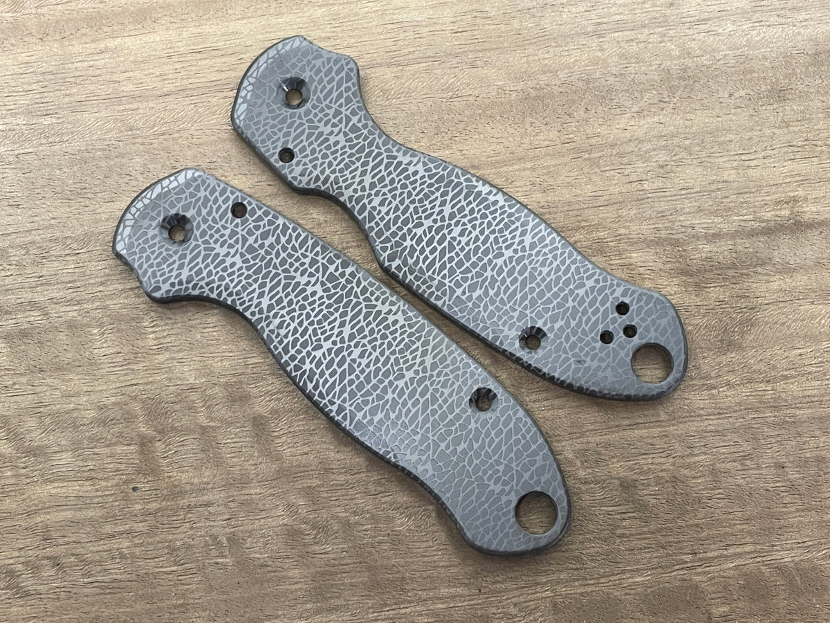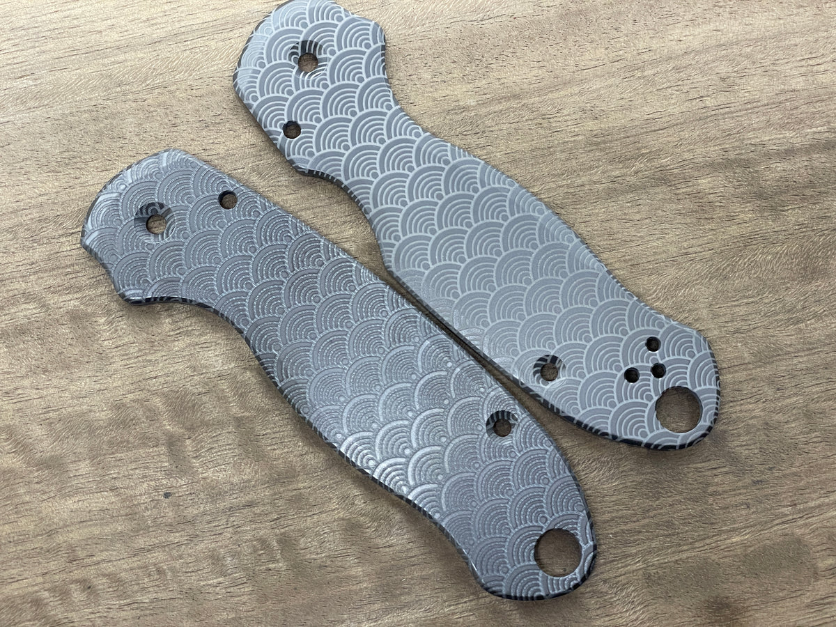 Upgrade your Spyderco Para 3 with pure zirconium scales finished in a permanent oil-slick black oxide. Hypoallergenic and scratch-resistant, these CNC-machined scales offer premium performance with a distinct aesthetic.